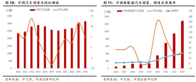 中国汽车产销量规模超3000万辆,新能源汽车市场占有率突破40%,带动中国汽车内外饰件量价齐升。根据中国汽车工业协会数据,2024年中国汽车产销量分别完成3128.2万辆和3143.6万辆,同比分别增长3.7%、4.5%,产销量再创新高,继续保持在3000万辆以上规模。其中,2024年新能源汽车产销分别完成1288.8万辆和1286.6万辆,同比分别增长34.4%、35.5%,新能源汽车新车销量达到汽车总销量的40.9%,较2023年提高9.3个百分点。随着我国汽车行业尤其是新能源汽车的蓬勃发展,对汽车内外饰行业的正面拉动效应已从规模扩张延伸至高端化、个性化维度,中国汽车内外饰行业发展前景广阔。