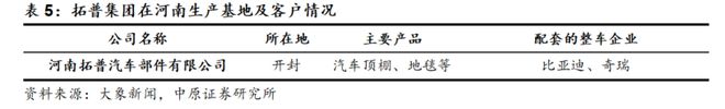 拓普集团在河南省设有子公司及生产基地,并与当地多家整车企业建立了直接或间接的配套关系。拓普集团全资子公司河南拓普汽车部件有限公司成立于2023年,注册地为河南省开封市尉氏先进制造业开发区,属于集团在河南的实体化布局。集团强调单车价值提升与系统集成供货,在河南推进工厂建设,天然提升对本地整车厂(如比亚迪、奇瑞等)的就近配套能力与响应效率,符合汽车零部件行业“区域集群化”的趋势,旨在贴近客户、降低物流成本、提高供应链响应速度。根据公司2025年半年报披露,2025年上半年河南工厂建设持续推进中。