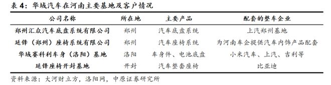 华域汽车在河南省设有生产基地,并与当地多家主要整车企业建立了紧密的配套关系,布局主要围绕郑州和洛阳等汽车产业核心区域展开。