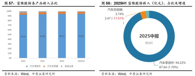 公司近五年收入总体呈先降后升的弱复苏轨迹,利润端2024年实现扭亏。2025年上半年,公司实现营业收入52.34亿,同比下降13.79%;利润总额-1,798.82万元,相较去年同期减少12,761.76 万元。主要原因包括:(1)汇率波动导致公司主要境外子公司Auria的欧元借款产生8,360万元人民币汇兑损失;报告期内公司汇兑损失共计1.03亿元,去年同期为汇兑收益8,913.73万元。若剔除汇兑损益,公司2025年上半年度利润总额为8,513.42万元,较去年同期增加6,464.20万元。(2)汽车内饰业务板块部分客户产量减少,部分车型降价导致收入减少。(3)公司进出口贸易板块为更好专注于主要战略目标、降低公司经营风险与资金风险,于2024年下半年出售两家非核心子公司,因此贸易板块收入较上年同期减少;同时上半年度受关税政策影响对美国收入有所下降。